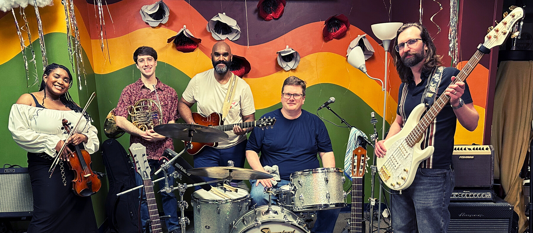 Ramah is usually dual-amped on acoustic and electric guitar, Kevin Jensen commanding drums, and newcomer Misha Keith on electric bass. Drawing out the ghosts is violinist Asa Jackson, and Cameron Kellner on a variety of horns and reeds, harmonizing with the confident lead saxophone of Dakota Nyman. If you’re lucky enough to catch Wooden Rings with Andrew Munger on vibraphone, your face will melt.